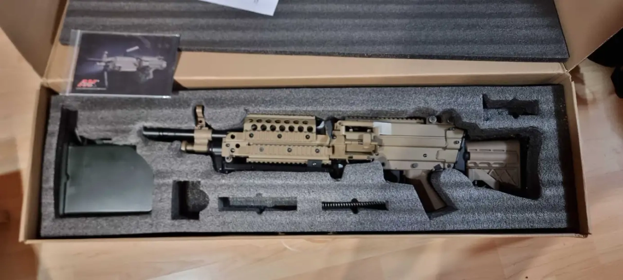 Vends M249 PJ achetée 2017. Corps complet, fournie avec grand chargeur adapté (2000 billes). Le pied/bipod est bloqué (visible sur photos), batterie HS non fournie car HS depuis le temp . Bonne base pour upgrade.
