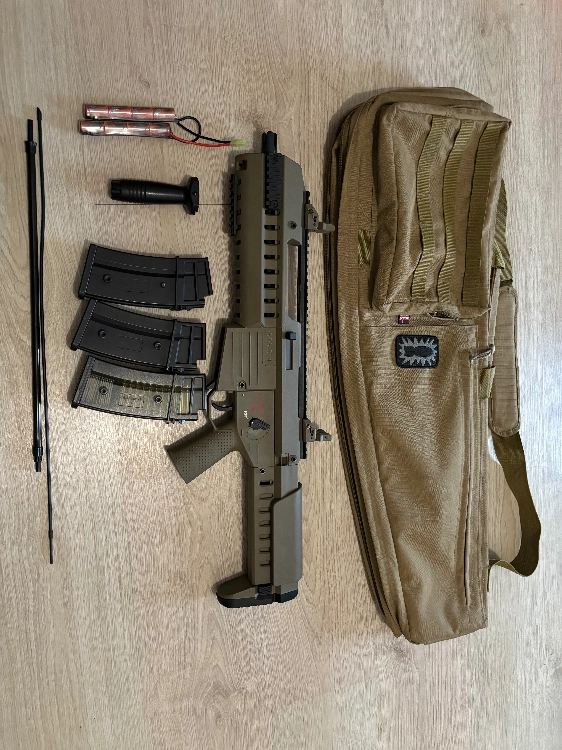 Bonjour je vend ma G14 AEG EBB GSG - Tan. Elle est vendu avec 3 chargeurs dont 2 grandes capacité compatible avec G36, une poignée verticale, sa batterie, un chargeur intelligent et sa housse de transport. C’est une offre qui ne sera pas à débattre car c’est un pack complet en très bonne état, la réplique à peus servis après son achat. J’offre aussi plusieurs kilo de billes biodégradable à l’heureux élu.