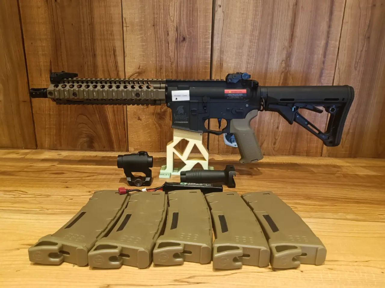 Je la vends avec la mallette, les 5 chargeurs Lancer tactical, viseur, poignée et une batterie