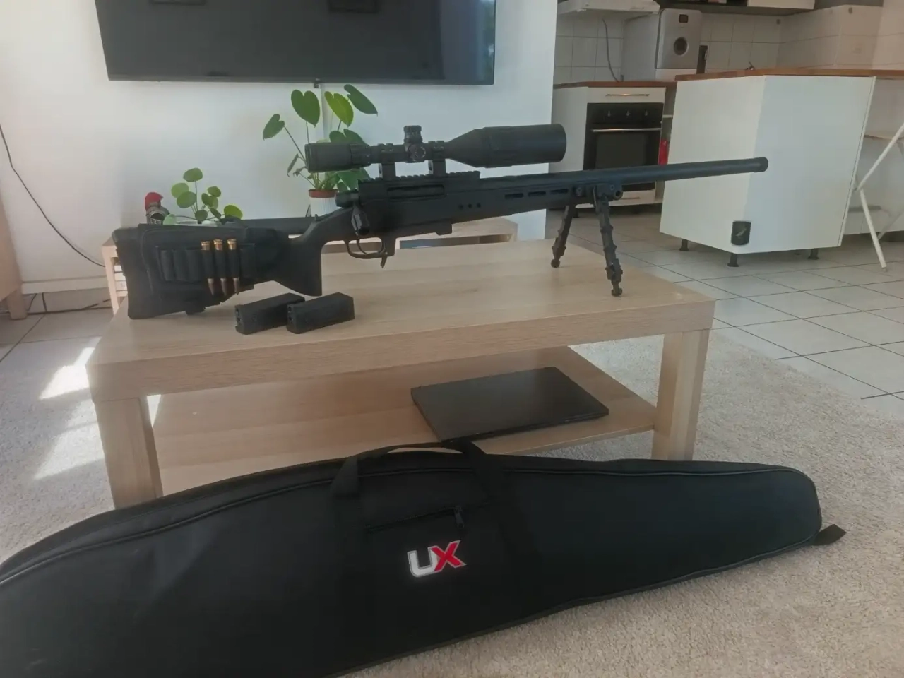 Hello la compagnie ! Je mets en vente mon TAC41 P avec deux chargeurs, une lunette ESSLNB 3-9X50mm, bipied SwissArms, des billes 0.40g bio et la housse.