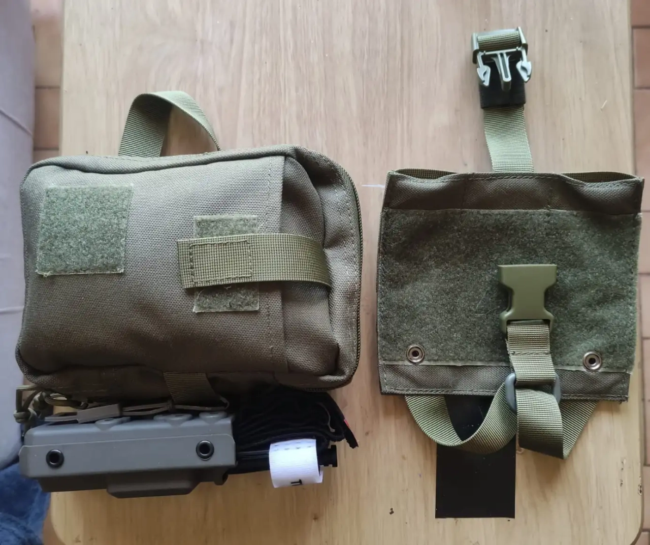 Je vends une poche molle (détachable) en OD ainsi qu'un porte tourniquet et le tourniquet qui va avec.