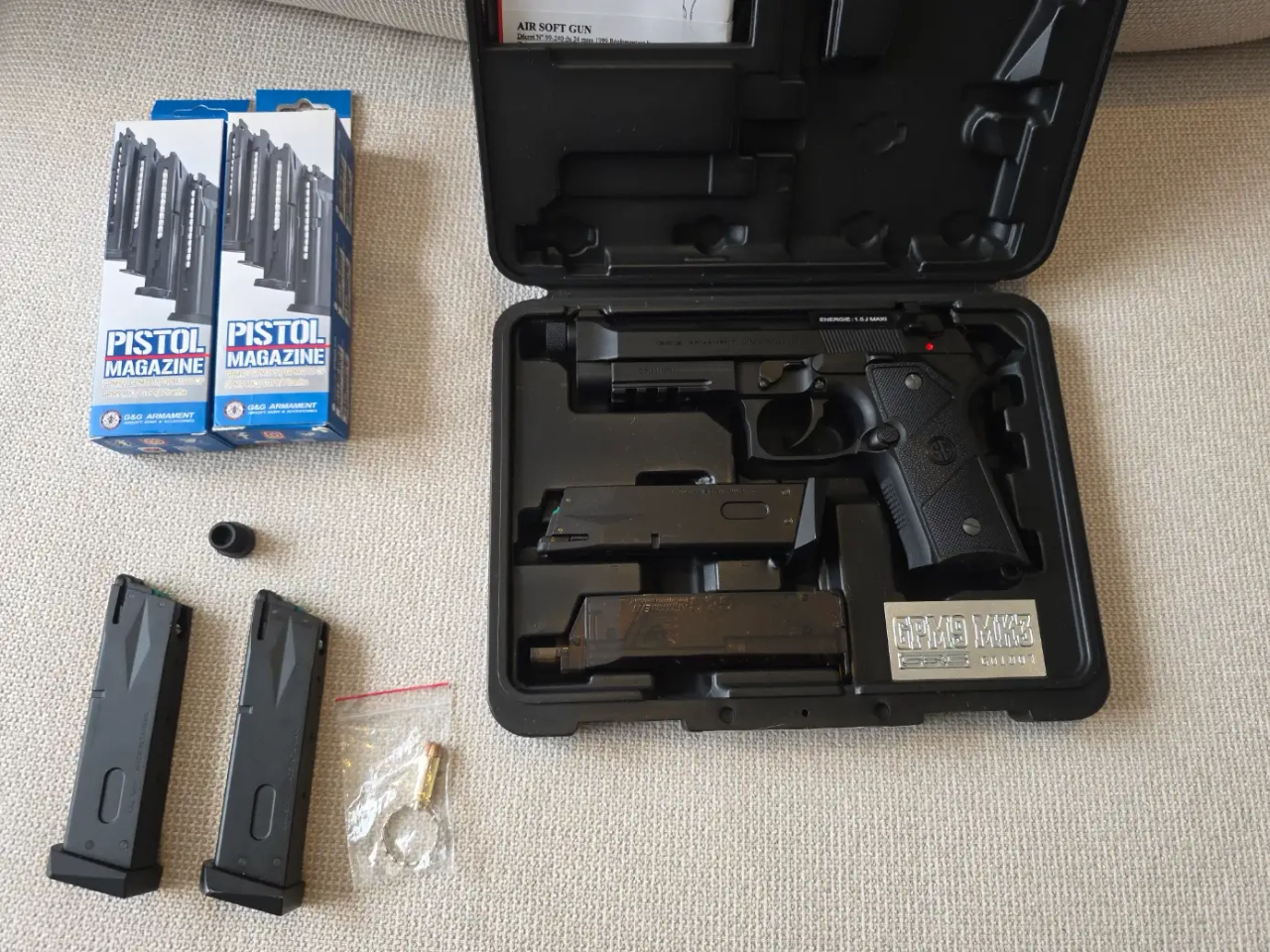 Suite à une dépense sur un coup de tête je me sépare d'un GPM9 MK3 G&G neuf, il n'a jamais vu le terrain et n'a pas tiré plus de 100 billes,