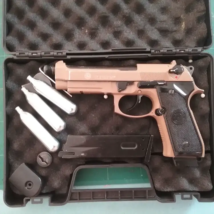 Pistolet taurus PT 92 AF Cal 6 mm en métal bronzé et noir avec cartouche de gaz