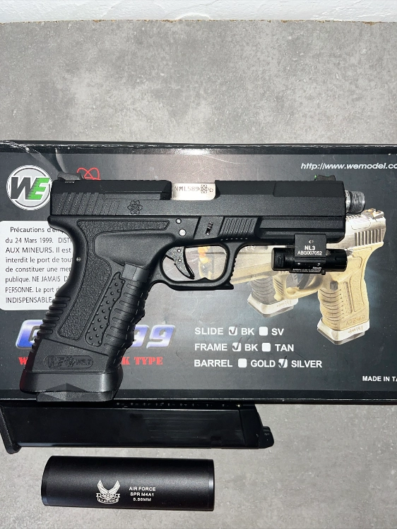 Vendu avec silencieux, laser et chargeur grande capacité.