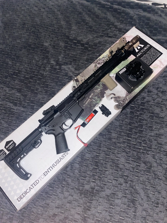 je vend ma Replique Aeg full metal de chez Arcturus , Tres bonne états elle marche parfaitement, La Gearbox est finie avec un nozzle étanche en téflon. Il fonctionne avec une chambre hop-up rotative en polymere , vendu avec une batterie( pas de chargeur de batterie inclus) 2 chargeur des chez arcturus cap130 billes , un point rouge et les organes de visée, une poignée BCM (viseur laser et lampe torche non inclus)