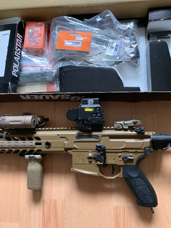 Réplique équipée avec une eotech + protection, mire mbus originale, batterie, dbal a2 switch poignée et silencieux.