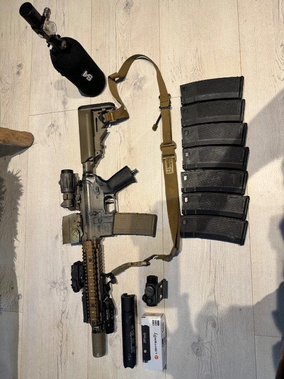 Je vends un lot ENTIER de matériel d’airsoft haut de gamme, idéal pour joueur confirmé ou débutant voulant s’équiper directement avec du top matos. Offre urgente, prix ferme : 1500€ le tout.