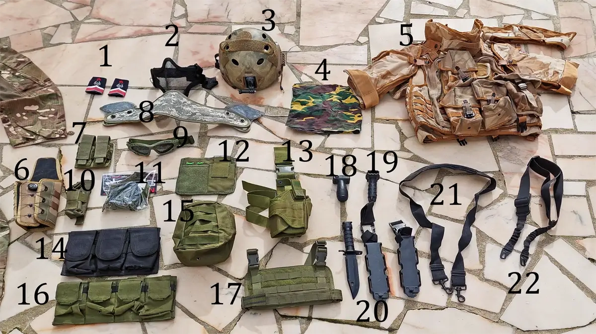 Inclus Epaulières, 2 utility pouch, 2 ammo pouch, 1 Knife/Lamp Pouch, 1 Half Collar & 1 Full Collar