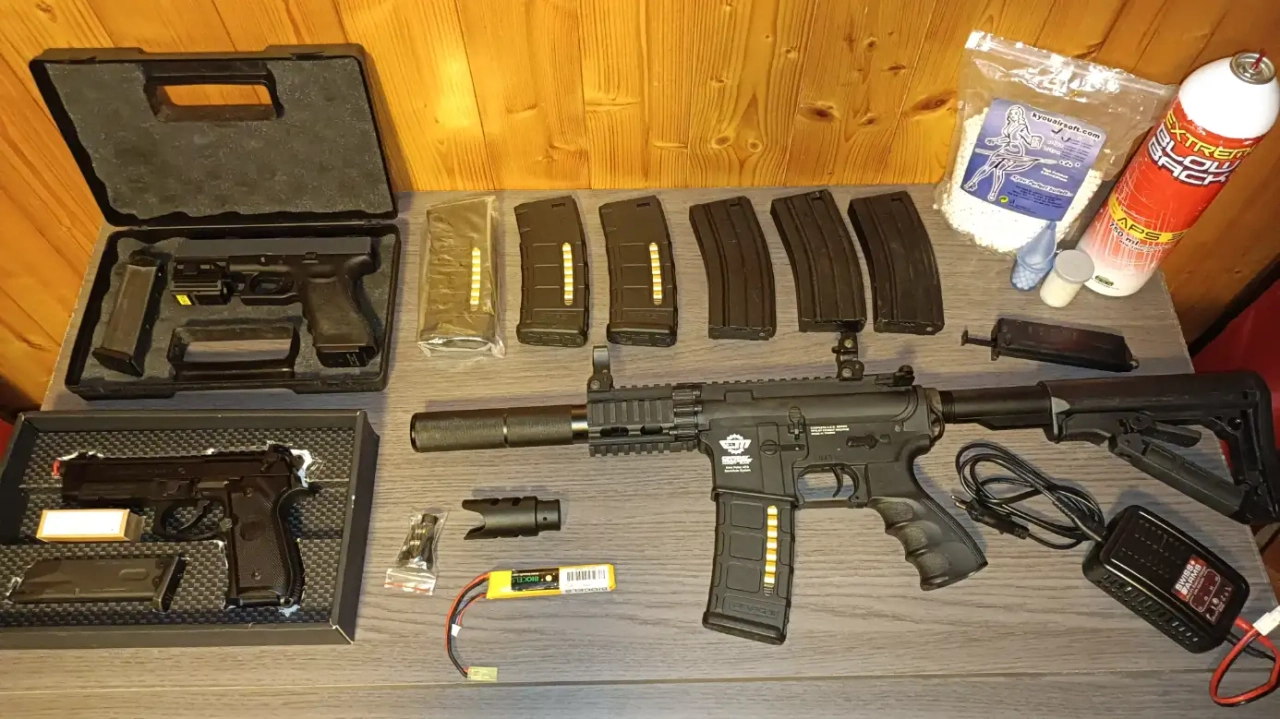 Plusieurs repliques airsoft avec equipement: