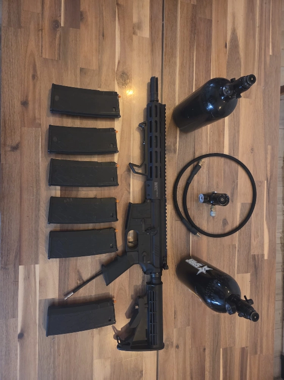 Bonjour je vend ma réplique MTW Wolverine avec deux bouteilles 0,8l, ligne US et régulateur avec 6 chargeurs.