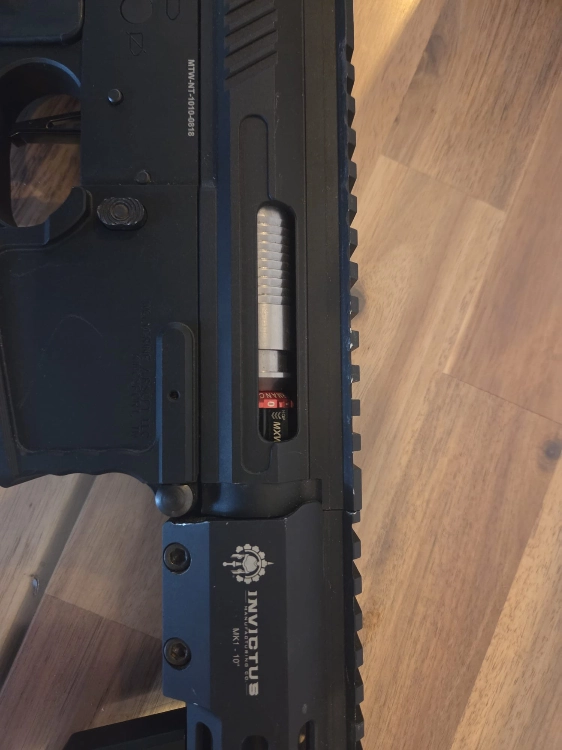 A l’intérieur il y a un bloc hop up Maax modèle. La réplique fonctionne parfaitement je la vend car je ne suis pas fan du HPA trop peu de sensation.