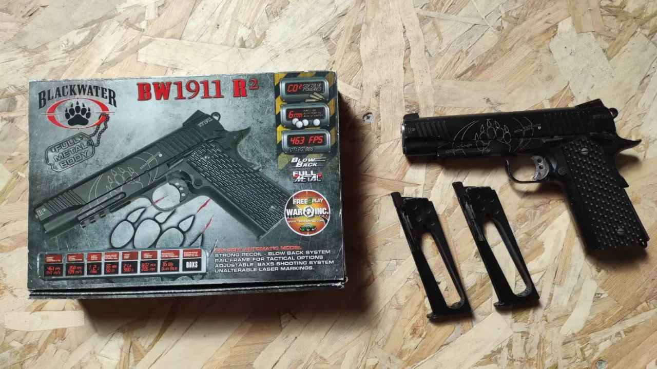 Vend réplique Colt 1911 BlackWater CO² avec 2 chargeurs.