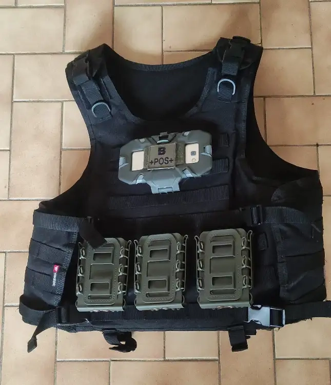il comporte trois portes chargeurs fast OD (Asg), un porte téléphone tactique et une grande poche OD (gourde ou deux chargeurs de HK 417).