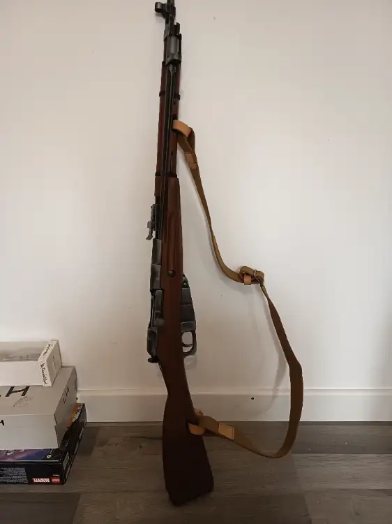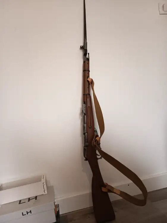 Mosin nagant m44 a co2 avec baïonnette , une sangle et un chargeur de 12 billes état neuf pratiquement jamais joué (1 partie ) . Pris d'achat neuf 289.99 euro sur destockage games .