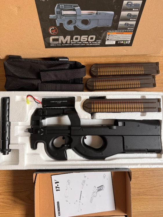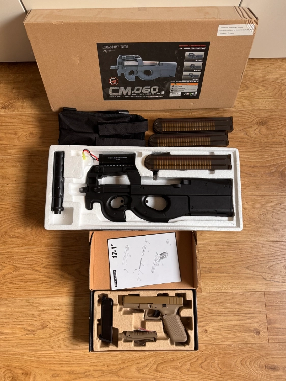 Boîte complète avec réplique, chargeur d’origine, batterie, chargeur de batterie, tige de débourrage, silencieux.