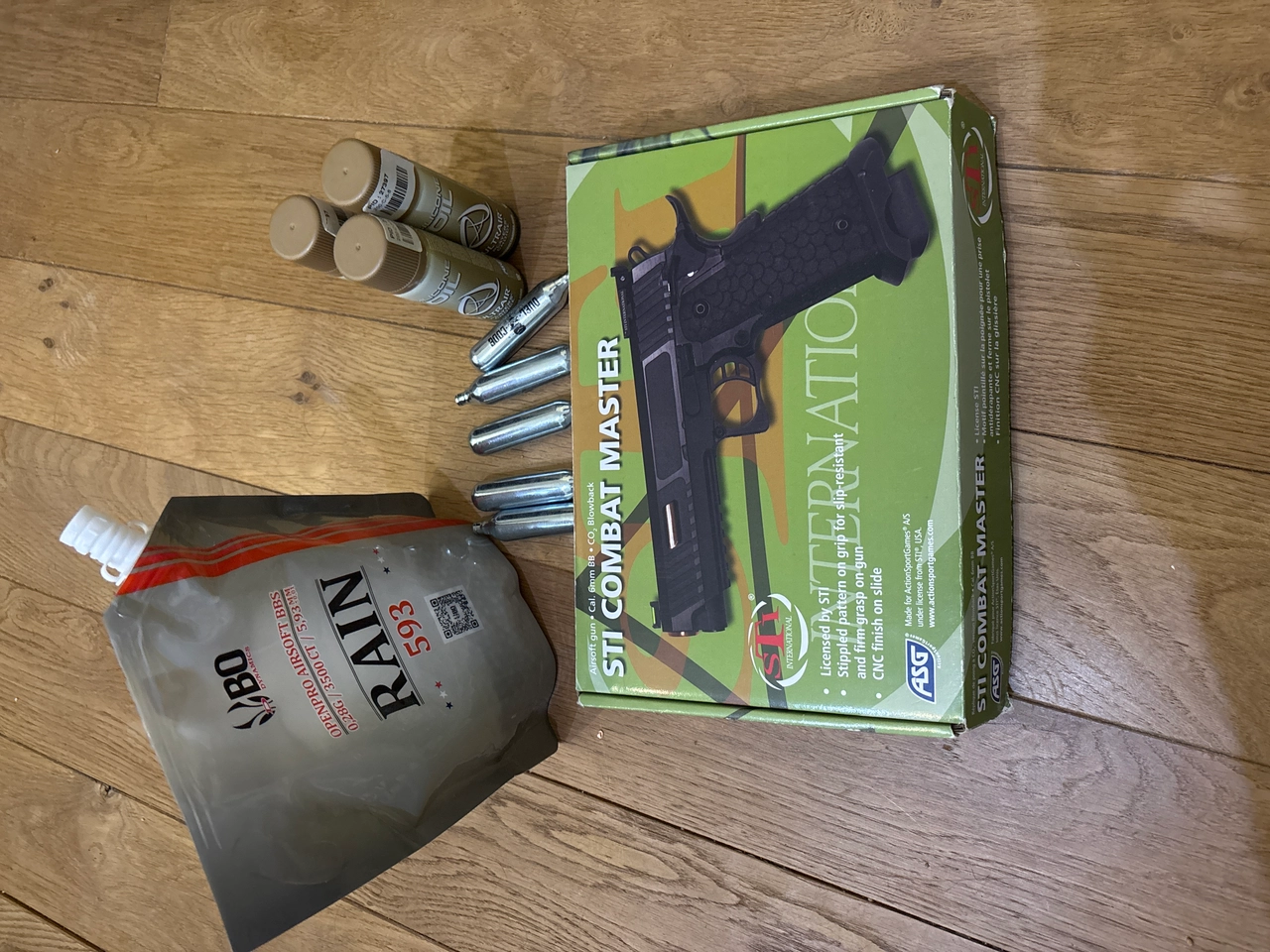 sti combat master en parfaite etat . fournis avec son lubrifiant de nettoyage, ces billes et quel que cartouche de co2 . il est tout en metal et la culasse est amovible . a venir chercher en main propre .pour plus de photos n’hésitez pas a me contacter je n’arrive pas a en mettre plus