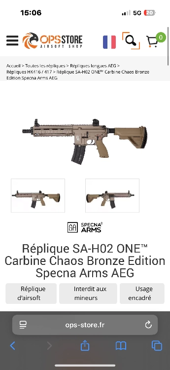 Bonjour je vends ma répliques SA-H02 de chez SPECNA ARMES car je n’en ai pas l’utilisation.