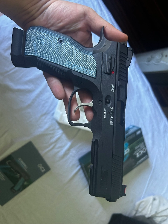 Avec sa boîte d’origine cette réplique à tiré l’équivalent d’un chargeur. Aucune marque ni problème.