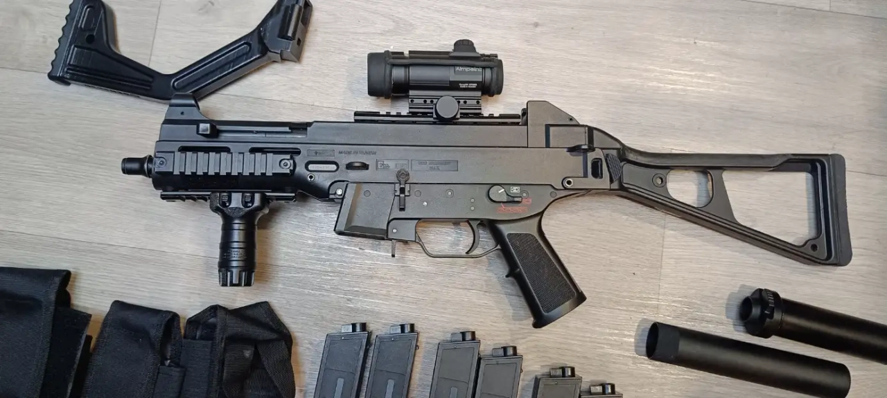 Vendu avec 6 chargeurs mid cap + 1 high cap ( qui n'est pas sur la photo)