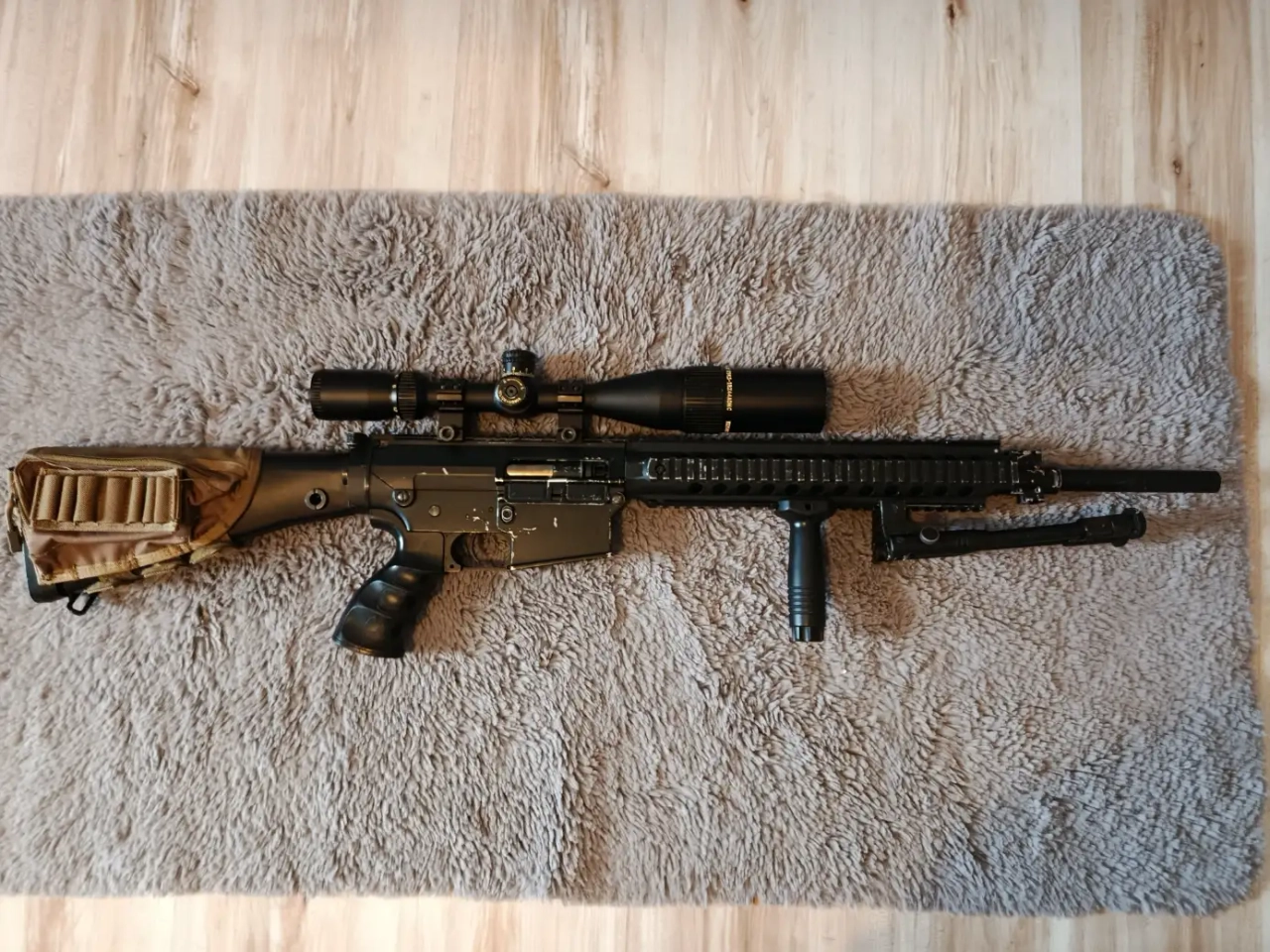 Vendu avec 3 chargeurs Mid-cap, 1 chargeur High-cap, une poignée, un bipied, un silencieux, une lunette JJ Airsoft 4.5-18x44 et un couvre crosse.