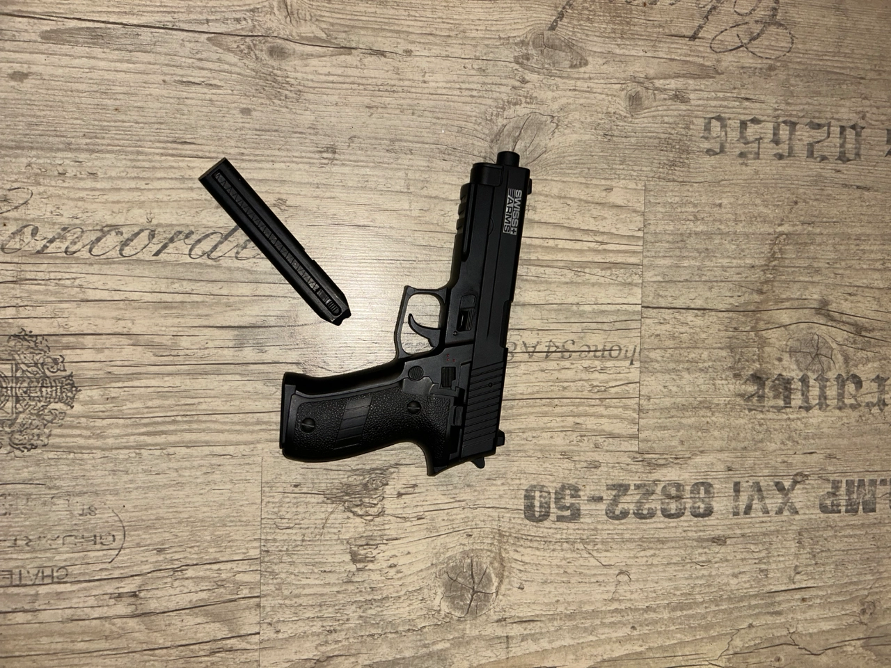Vend pistolet swiss arms AEP avec sa caisse de transport et son chargeur.