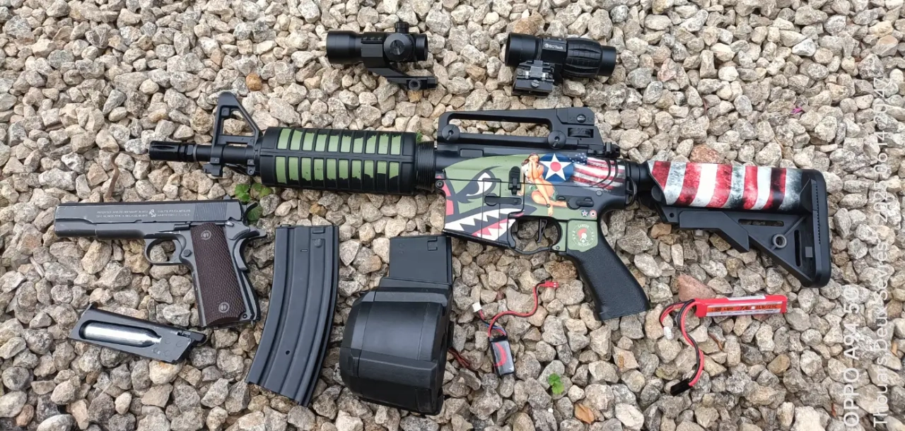 M4 Lt 03 gen 2 + drum électrique + 1 chargeur + sa batterie + eotech + viseur point rouge
