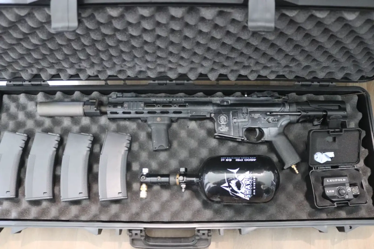 Accessoires inclus : Chargeurs, Caisse de rangement, flexible, détendeur (Ninja v2), Optique, Silencieux, poignée.
