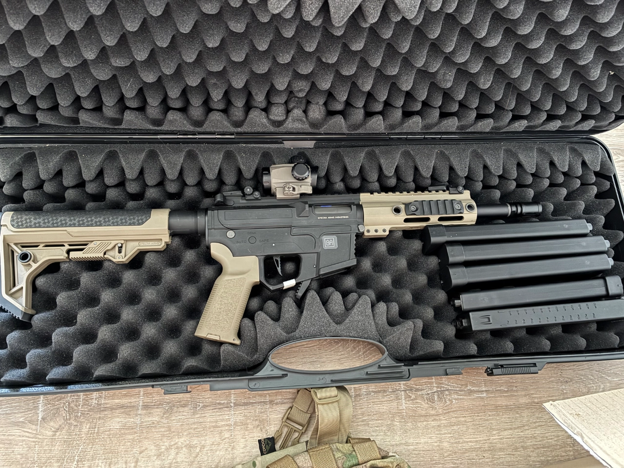 Bonjour je vends ma fx01 specna arms elle possède le mosfet hal etu entièrement programmable vendu avec 5 chargeur arp9 ça batterie lipo et chargeur de batterie lipo d’origine boîte d’origine (le viseur n’est pas inclus) elle a 3 partie état neuf valeur du lot 320€ je la laisse à 250 € fonctionne parfaitement
