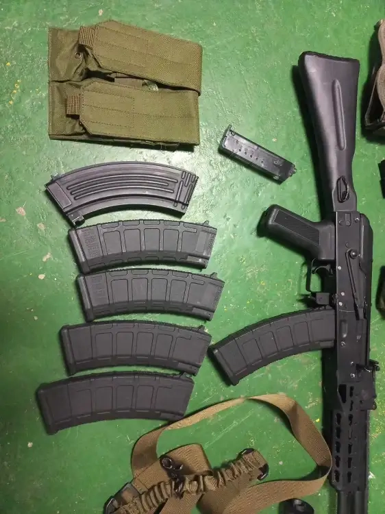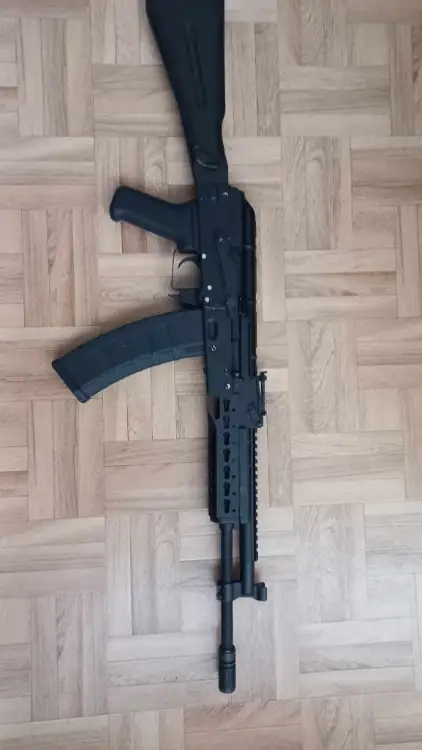 ak 74 aeg crosse pliante avec silencieux et 6 chargeurs, de nombreux accesoires sont vendu avec 20 cartouches de co2 billes en 0.20mm, lunettes, red dot... fourni sans batterie