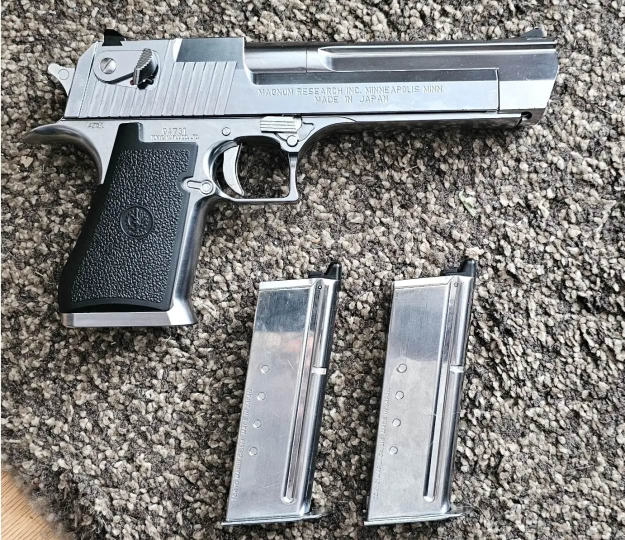 Je vend un Desert eagle Marui gaz blowback semi full auto, avec un chargeur supp sans fuite comme celui d'origine. Vendu dans sa boîte d'origine.