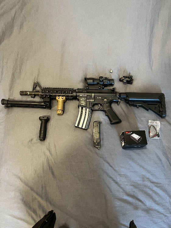 Bonjour, je mets en vente ma réplique de M4 de marque Bolt elle est blowback avec un léger recule a chaque tires très bon état vendu avec un bipieds deux poignet une tan et une noire un viseur holographique tactical OPS une batterie lipo 11.1V avec un chargeur plus quelques billes