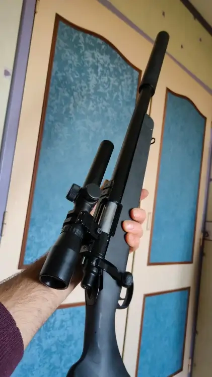Silencieux maison XXL avec tube mitraillette et mousse qui rend le bruit bien sourd.