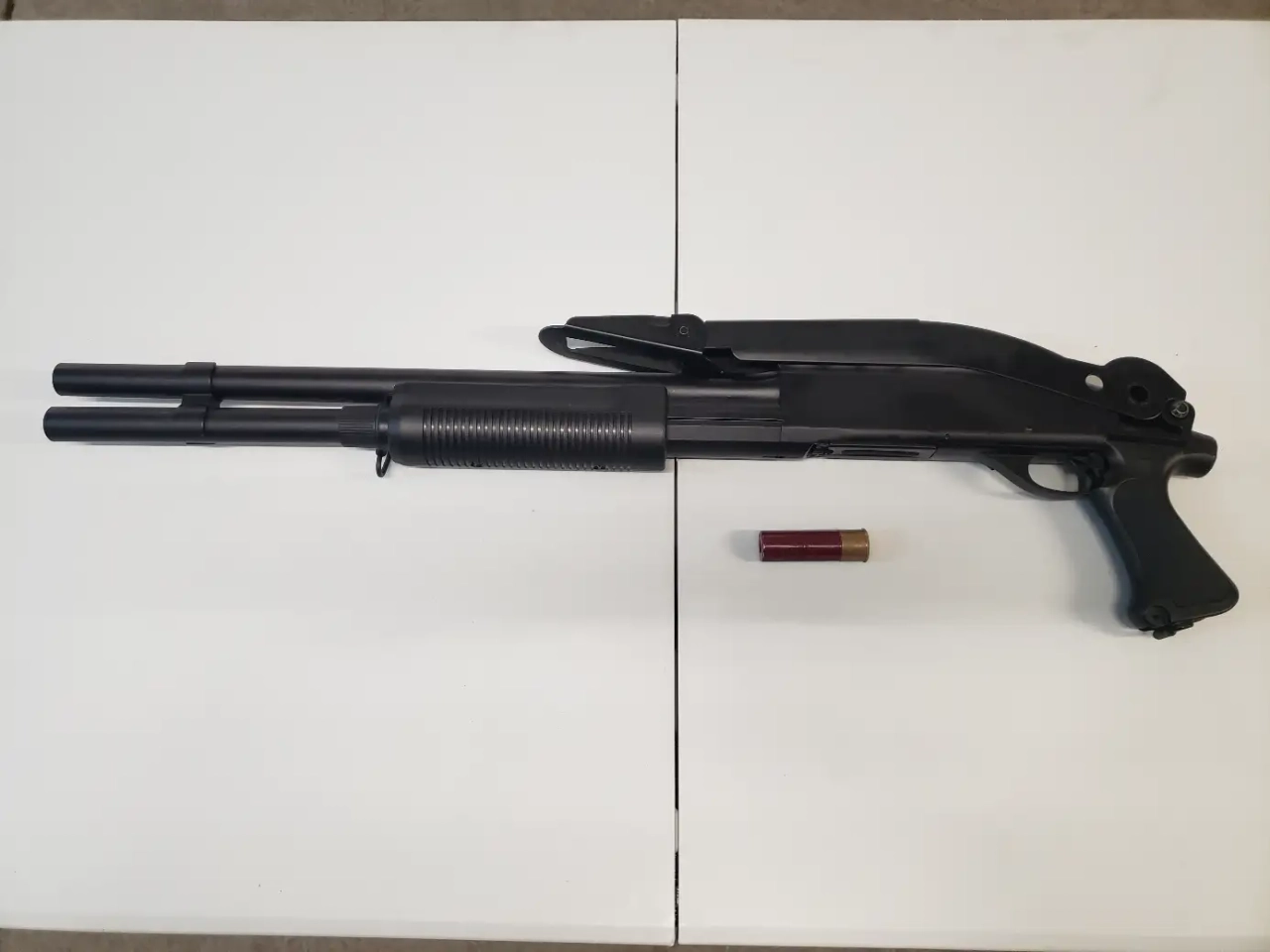 - Fusil à pompe CM350 Long CYMA Spring, matière plastique et métal, puissance 250 fps. Chargeur douille 30 billes (10 tir de 3 billes)