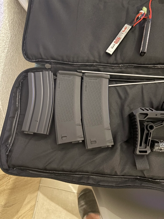bonjour je vend un lot répliques specna arms edge full métal aeg avec 3 lipo traceur et viseur point rouge billes fluo fourni en 0,25g 4 chargeur etc état neuf servie 1 fois remise en main propre