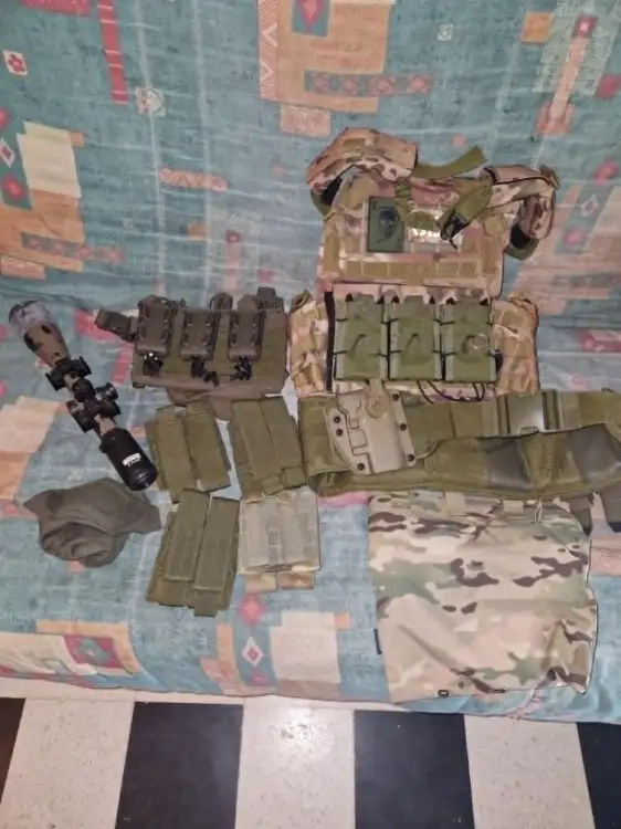 - plate carrer avec 3 poche chargeur une ceinture equipé d'un holster adapt x dump pouch et poche chargeur pistolet