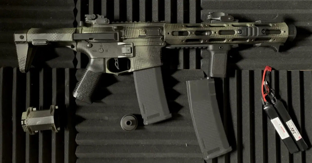 La réplique a été upgradée et recâblée en DEAN. J’ai changé le set d’engrenage d’origine et refait le calage au passage. J’ai également modifié la réplique pour qu’elle ait du précocking (50%) ce qui fait qu’elle est très réactive en 11.1v même avec le moteur d’origine.