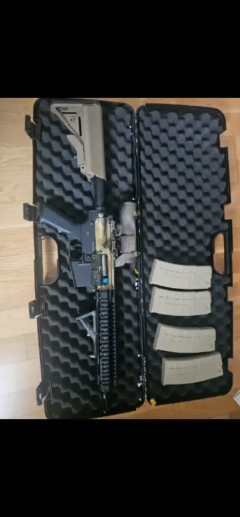 Il est vendu avec ses 4 chargeurs et 1 upper avec gardemain mk18 bronze en plus
