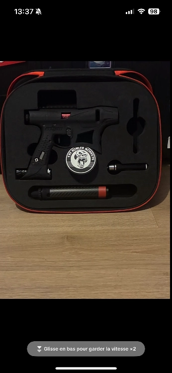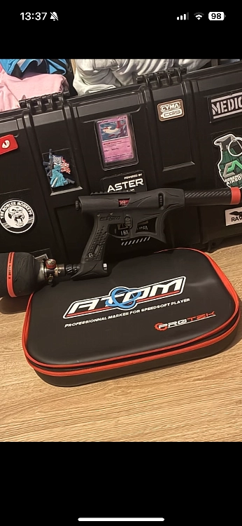 Bonjour je vend mon atome avec sa bouteille carbone un tout petit problème au régulateur un joint qui fuit au dessus de 1000 psi dans la bouteille donc pas dépasse 1000 sur la bouteille elle et entièrement fonctionnel. Malgré ce problème, il est possible de jouer avec elle fonctionne super bien cycle bien tir droit et fourni avec la bouteille carbone. Me contacter directement par téléphone.