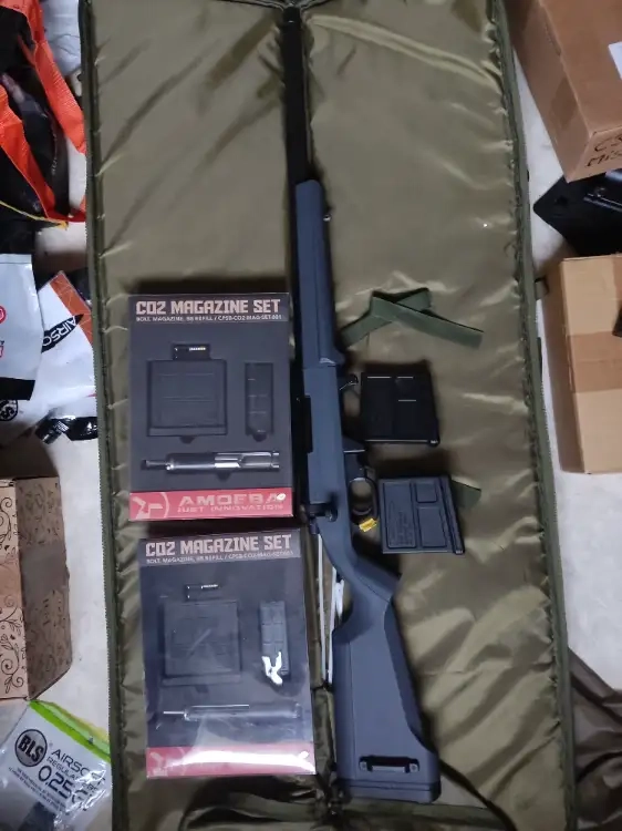 Amoeba striker en spring peux être passer en CO2 avec les deux kit CO2. Il y a deux chargeur pour le spring et du coup deux chargeur avec le CO2. Il y a aussi deux clés BTR dans la poignée qui serve pour le démontage.