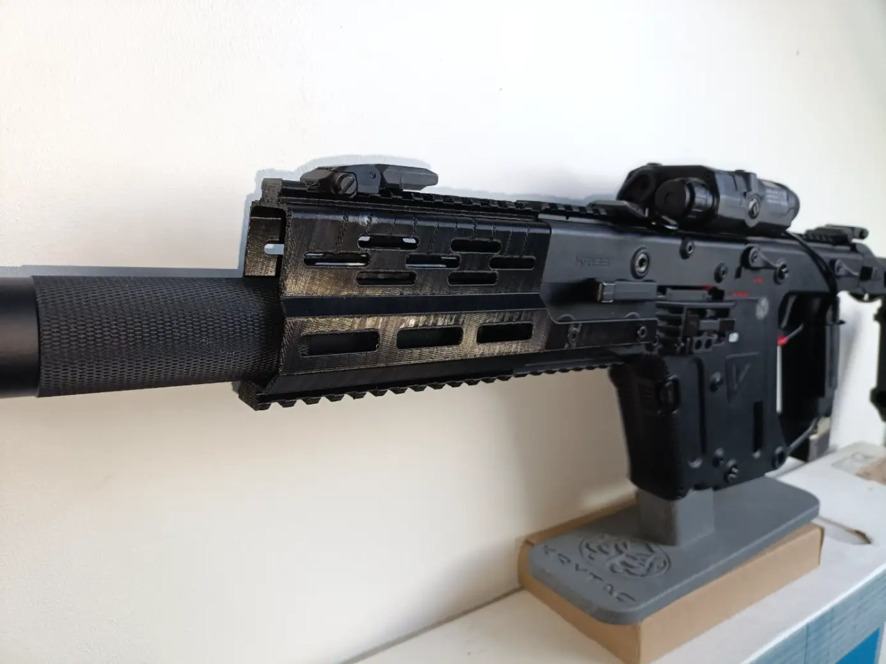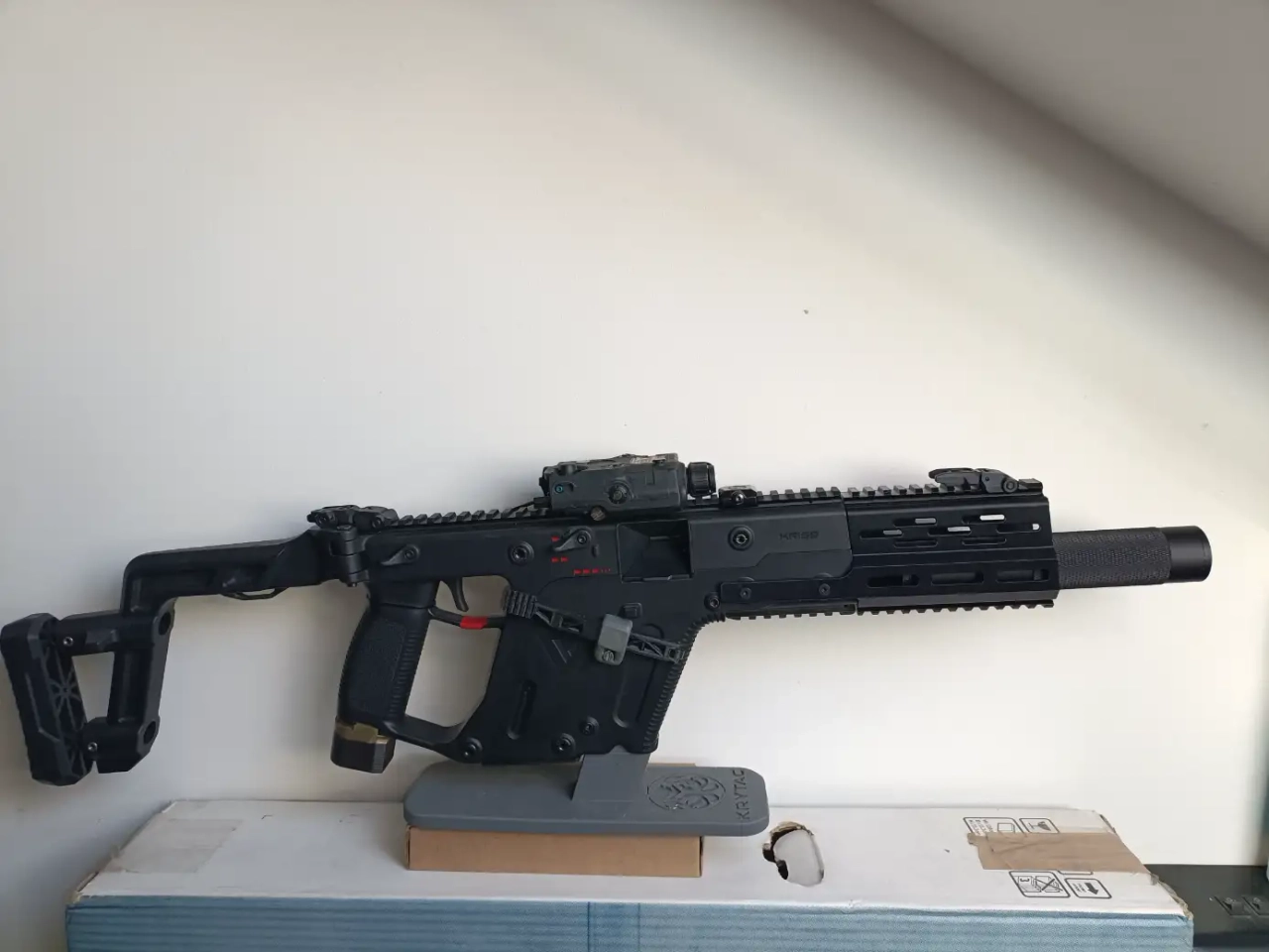 Bonjour, je Met en vente Une kriss Vector,avec garde main en impression 3D, le Canon est plus long fonctionne très bien,la batterie sera fourni avec deux chargeur donc un qui remonte Mal les billes, répliques n'a jamais servi sauf pour quelques tire