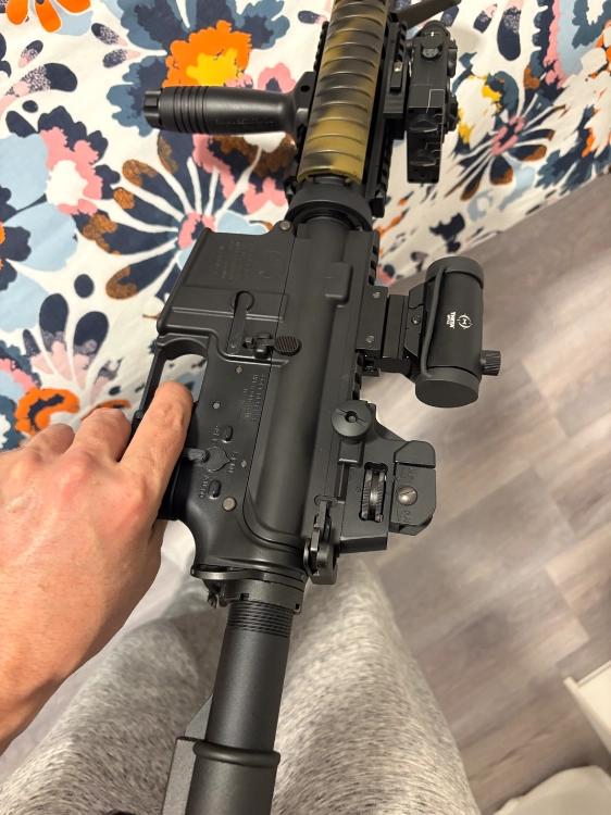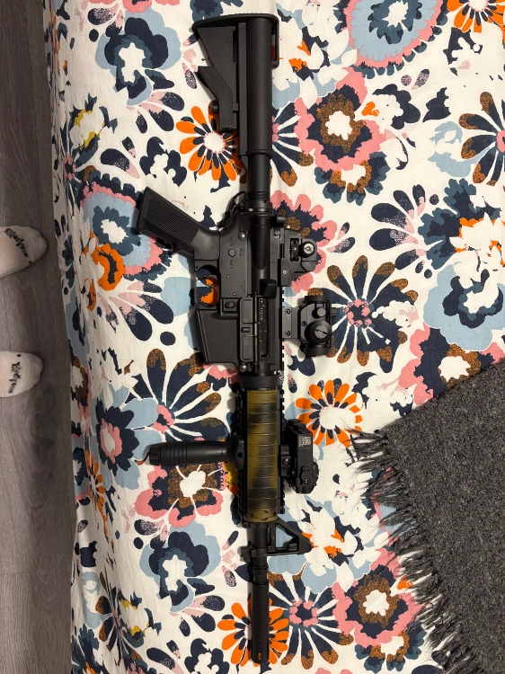 Bonjour je vends ma Mws cqbr marui neuve une seul journée avec en interne buffer mec pts alu avec joint quantum et nub quantum en externe cache flamme style m16 boîtier anpeq factice cache rail sur les côté comme sur la photo cross style veille m4 + cross d’origine avec chargeur d’origine et chargeur T8 je la vends 450 € remise en main propre sur Marseille me contacter au 0751656129