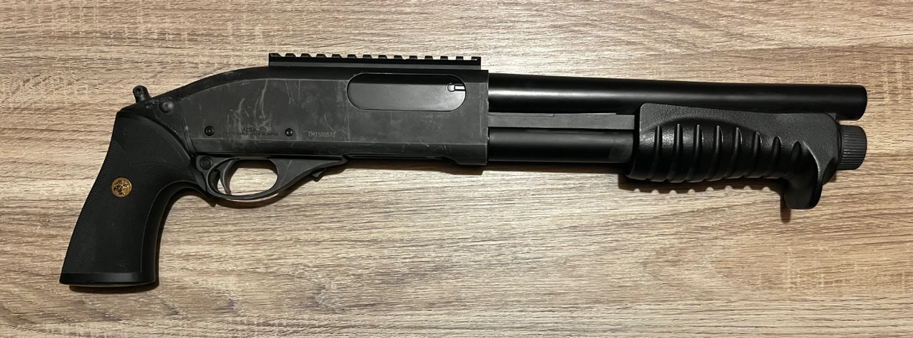 Je vends ma réplique d’airsoft Tokyo Marui M870 Breacher (gaz) ainsi que son étui. Elle fonctionne parfaitement : pompe, tir, hop-up, tout est OK. Quelques rayures visibles sur la carcasse / le métal (voir photos), mais rien qui n’impacte le tir.
