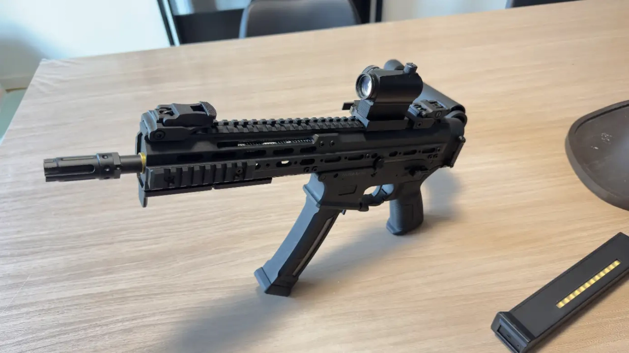 La réplique est presque d'origine, il n'y a que le moteur qui a été changé pour un SHS Hi speed et le joint hop up pour un Prometheus violet.