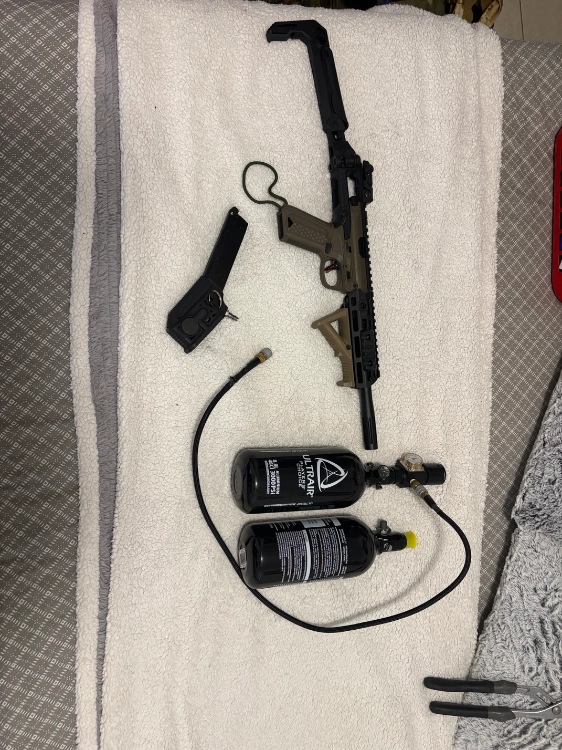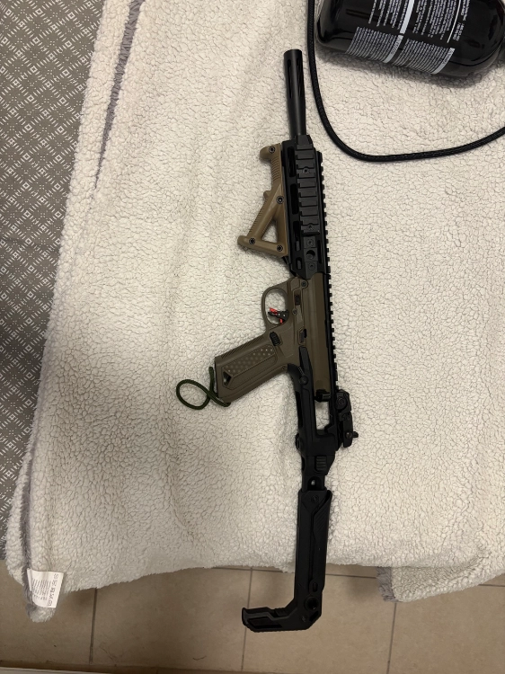 Bonjour je mets en vente mon Aap 01 hpa full upgrade avec deux bouteille 0.8 + régulateur balistik + ligne us avec sa adaptateur hpa vers m4 de marque pulse en externe kit rail picatynni + cross pliable AAC + garde main AAC en interne canon hybride modify en 6.3 joint Maple leaf 60 degrés jaune + block hop up AAC détente réglable AAC ensuite marteau renforcé + sear spring 140% + fire pin lock renforcé +poignée angulaire + levier armement AAC et la bouteille en plus manque le manomètre d’air restante dans la bouteille se trouve sur ops store remise en main propre j’en demande 430€ négociable