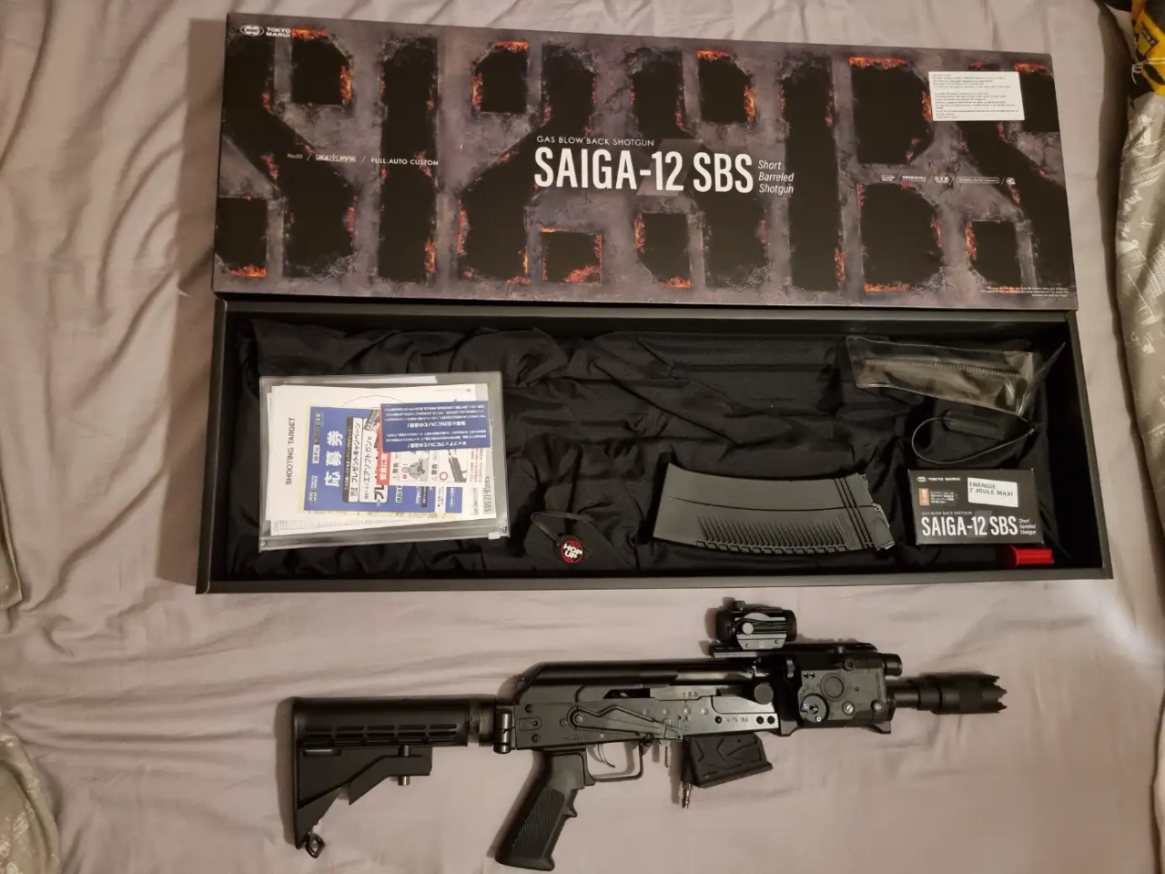 Je vend mon Saiga 12 SBS Marui (Valeur 600€) dans sa boite avec toutes les pièces d'origine fournies.
