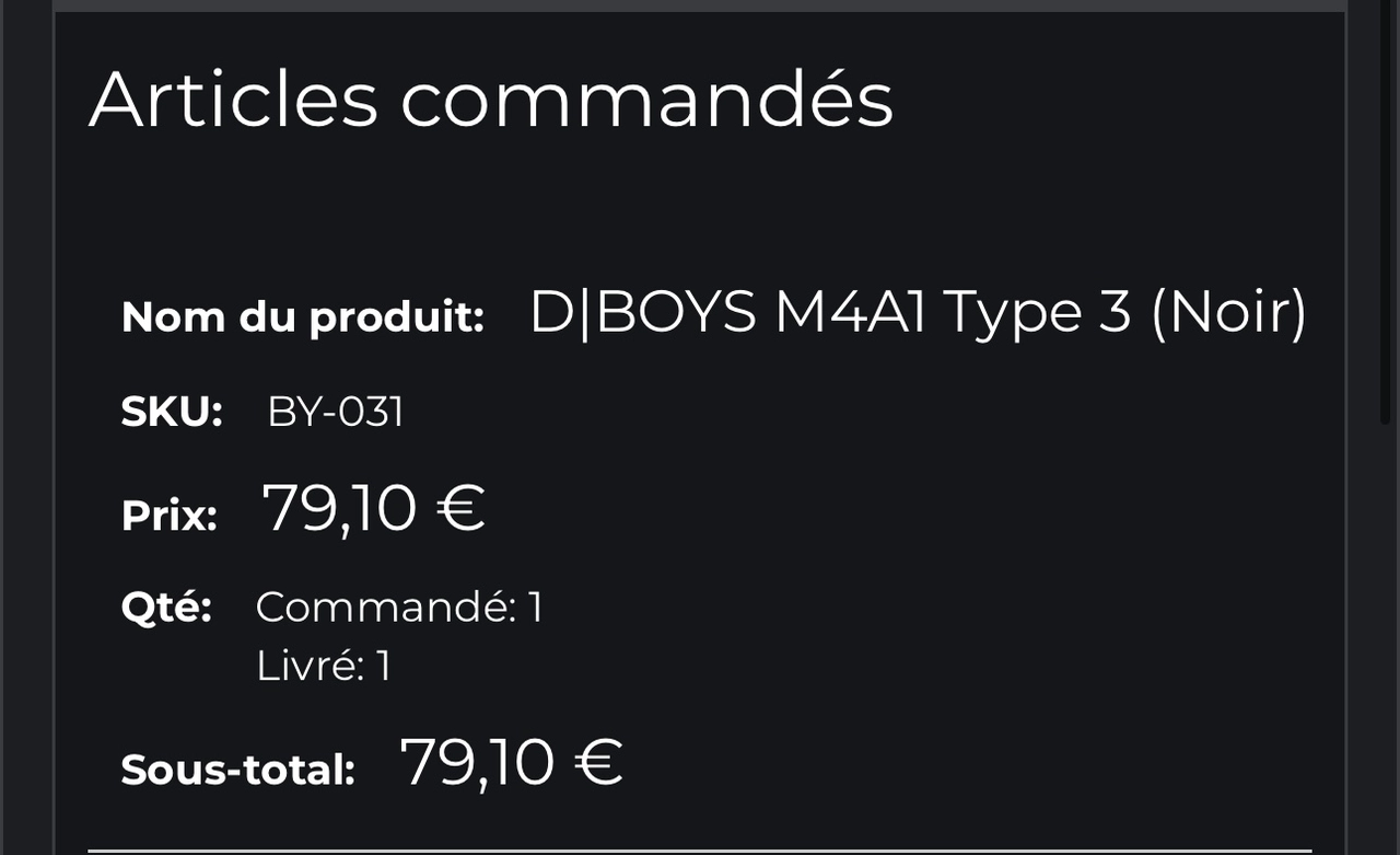 Vend M4A1 type 3 jamais utilisé acheté 79 je la vend 40€ négociable j’ai pas eu de batterie avec