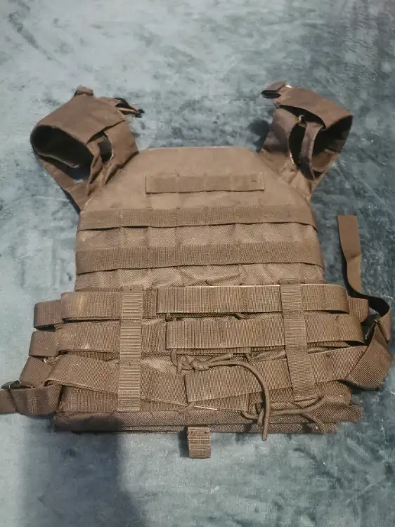 Je vends un gilet tactique noir de marque Wosport, en bon état.