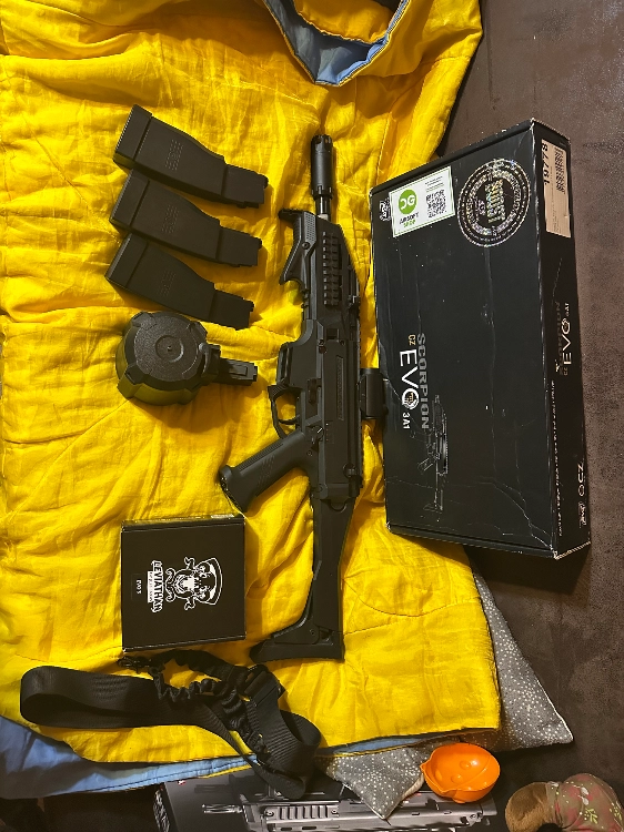 avec 3 chargeurs hicap et un drum électrique (qui feed très mal, à bricoler)