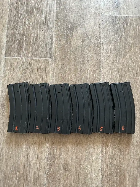 Lot de 6 chargeurs type m4 MidCap en bon état. Utilisés donc comporte des rayures mais fonctionnent parfaitement