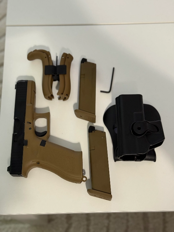 Bonjour, je vends mon Glock 17 Gen 5 French Edition VFC / UMAREX Gaz avec deux chargeurs et un holster + les backstraps glock officiels